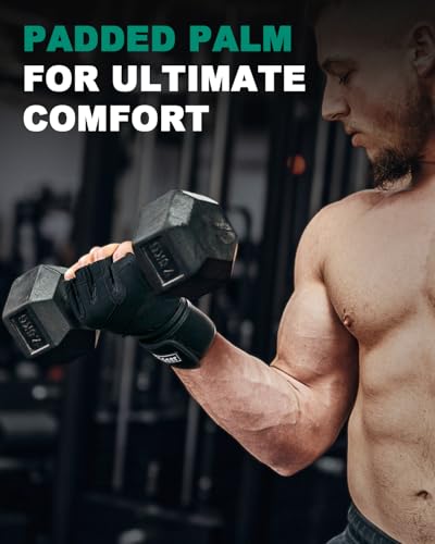Trideer Workout Gloves for Men, Weight Lifting Gloves with Wrist Wrap Support, Full Palm Protection & Extra Grips for Weightlifting, Exercise, Cross Training, Fitness, Pull-up